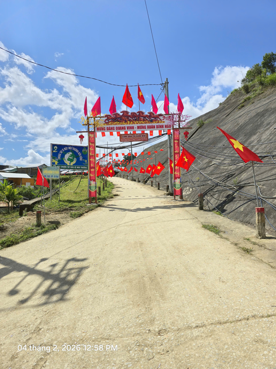 Những ngày giáp Tết Bính Ngọ 2026, nếu có dịp ngược lên các bản làng của xã vùng cao Phước Thành (TP Đà Nẵng), người ta dễ dàng cảm nhận được một mùa xuân đang về rất gần. Trong tiết trời se lạnh đặc trưng của núi rừng, sắc đỏ của cờ Tổ quốc, cờ Đảng hòa cùng ánh đèn nhiều màu giăng kín các tuyến đường trung tâm xã, tạo nên một bức tranh xuân vừa ấm áp, vừa rộn ràng.
